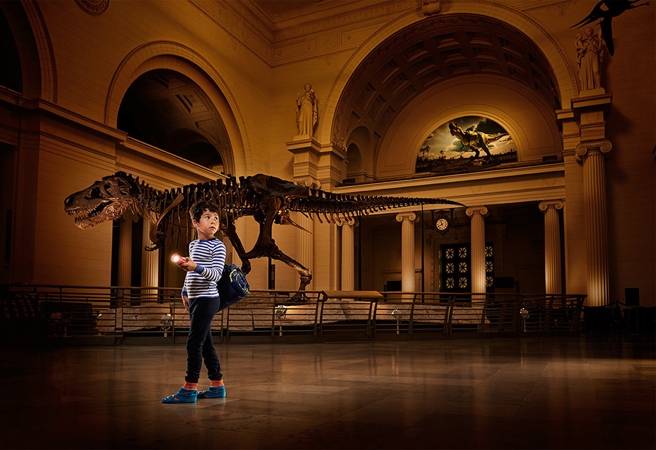 In June I was commissioned by JWT & the Illinois Office of Tourism to create a dramatic portrait to advertise the Field Museum’s Dino Camp. It was fun to get access to the museum after hours. I hadn’t been there in a few years and they have a ton of fascinating exhibits. I mixed my strobes with the ambient lighting there and then enhanced the photo a little more in post to give it that dark and dramatic feel. This image & an outtake were used on the homepage of enjoyillinois.com in July.